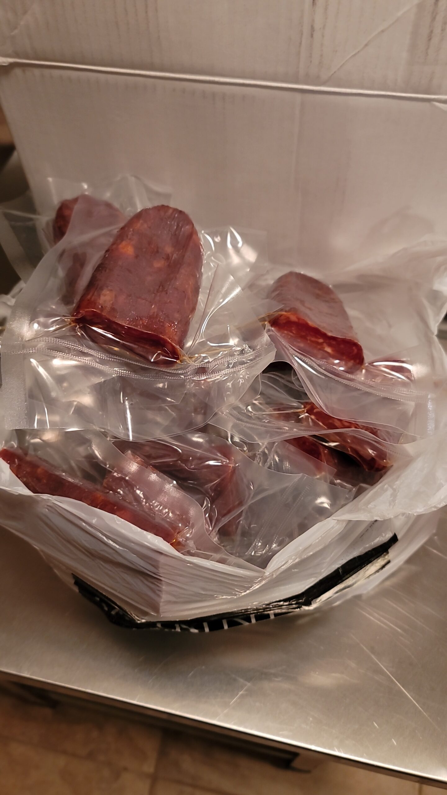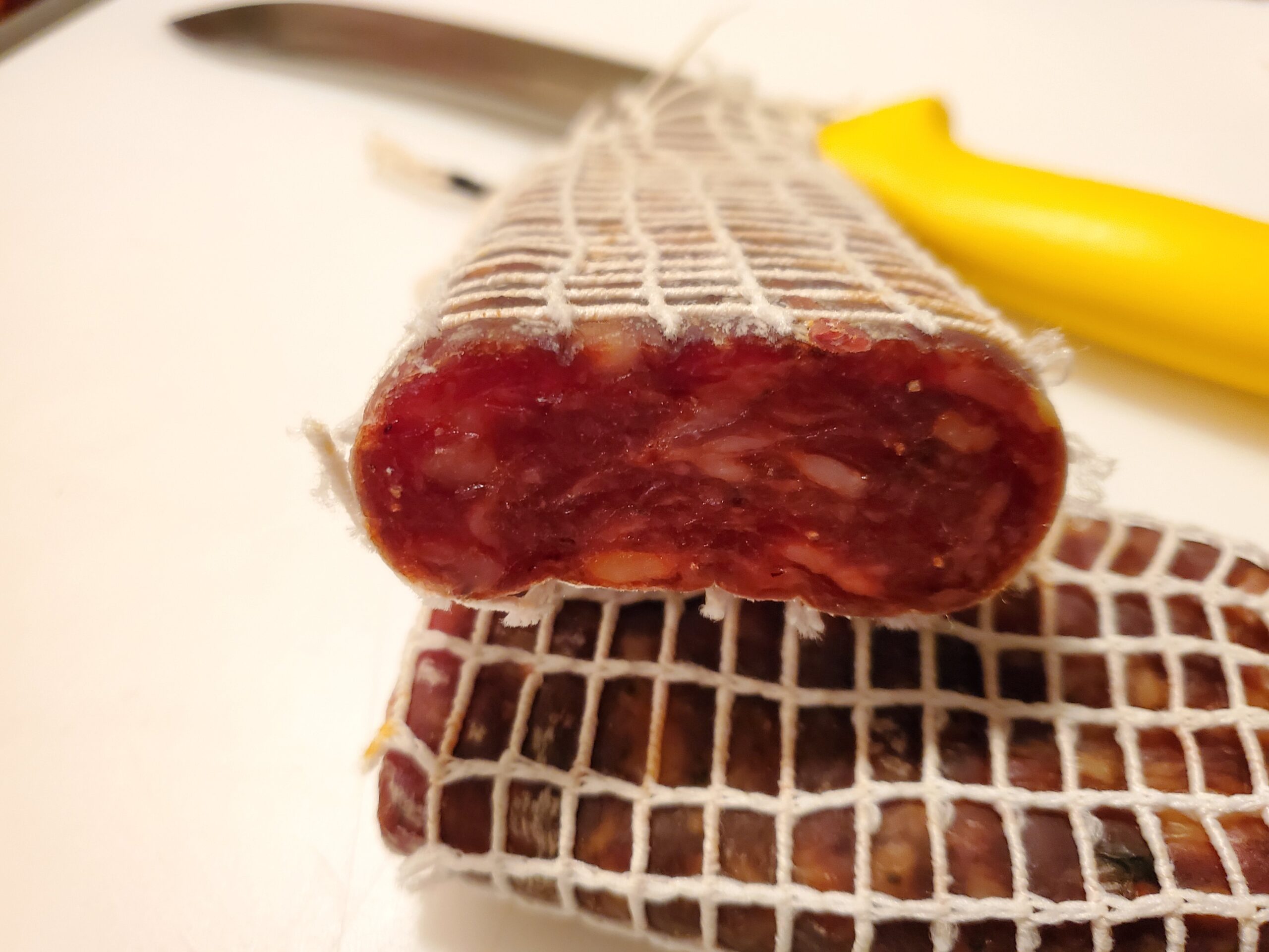 Air-dried and pressed salami with a complex flavor featuring a peppery heat from Calabrian chilies.